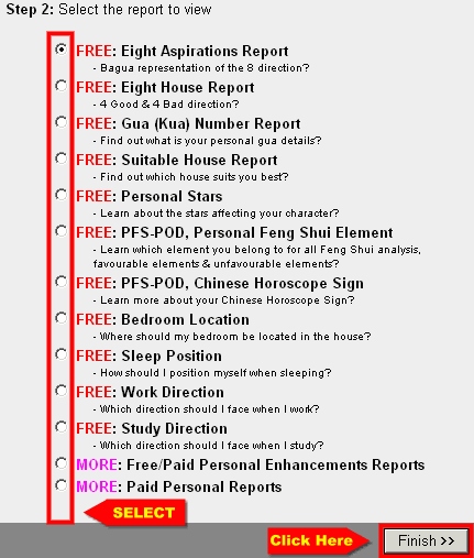- Next is to select the report to generate. In this case, select the PFS-POD: Chinese Horoscope Report and click FINISH.
